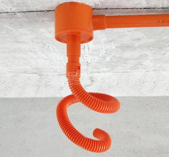 常规施工中波纹管直接和线管连接,胶带缠绕,时间久了容易脱胶脱落, 公司为了解决这个问题,集团总部精心研发了“波纹管连接件”,卡扣弹簧式, 施工操作便捷,波纹管安装牢固易拆卸。